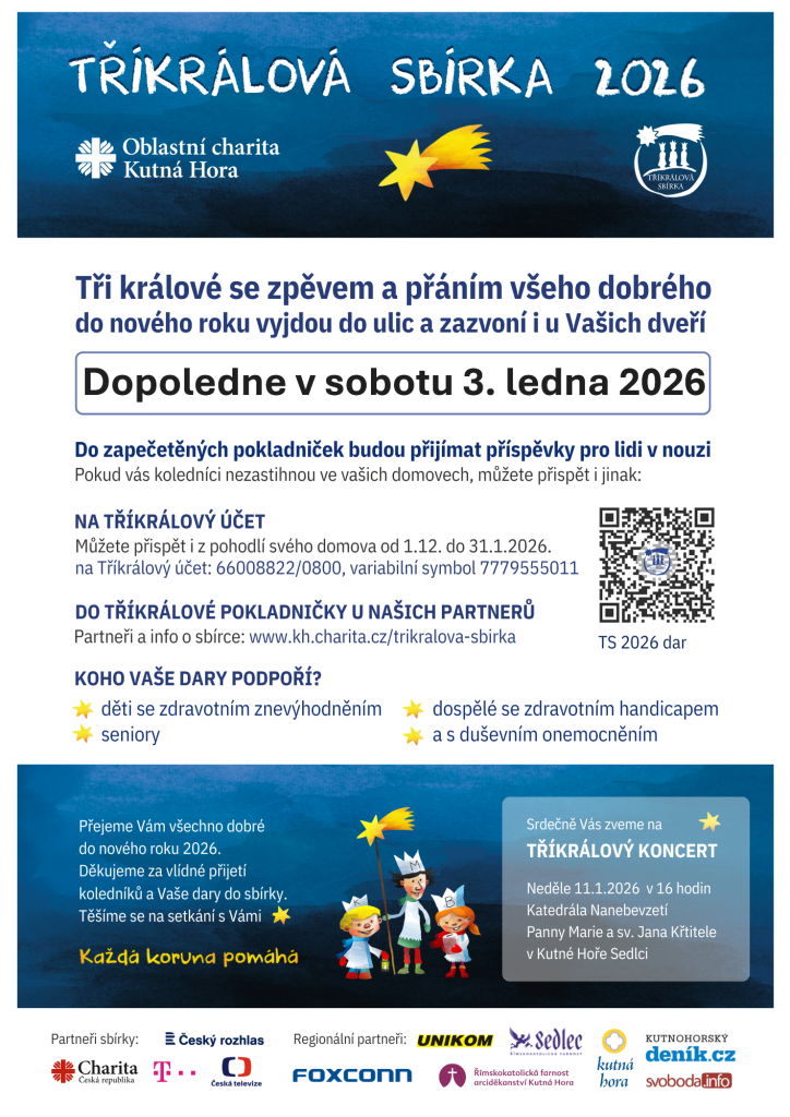 Sbírka v naší obci proběhne v sobotu 3.1.2026